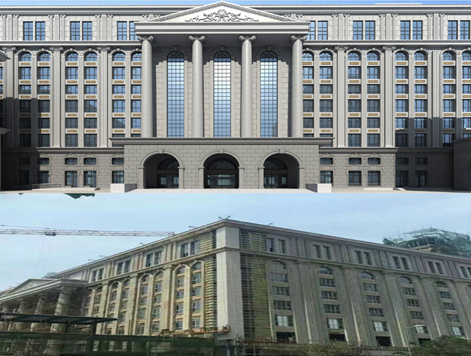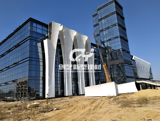 采用機(jī)械噴制加工,高溫養(yǎng)護(hù)成型,大型構(gòu)件采用鋼骨架節(jié)點(diǎn)方式