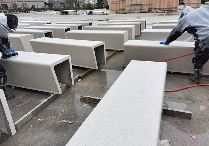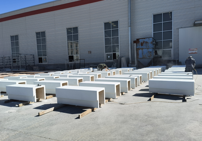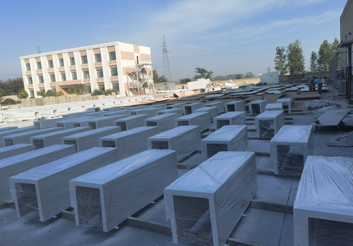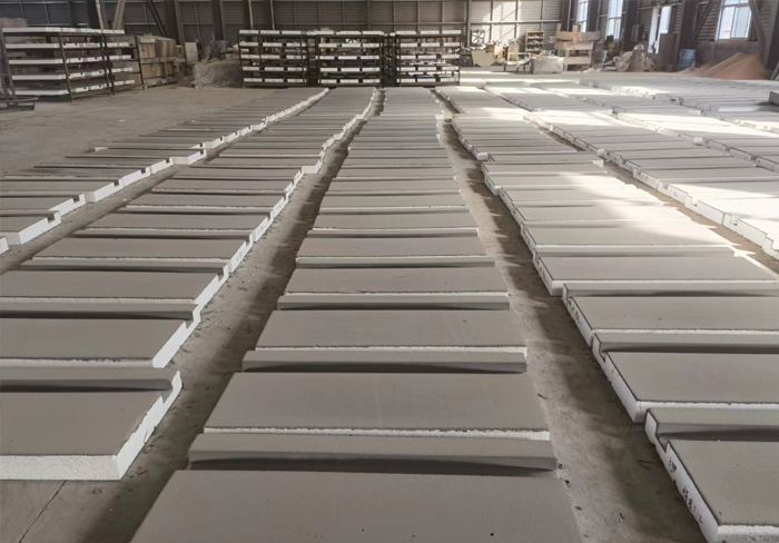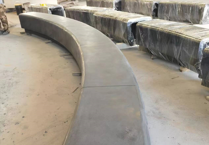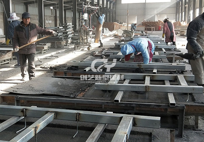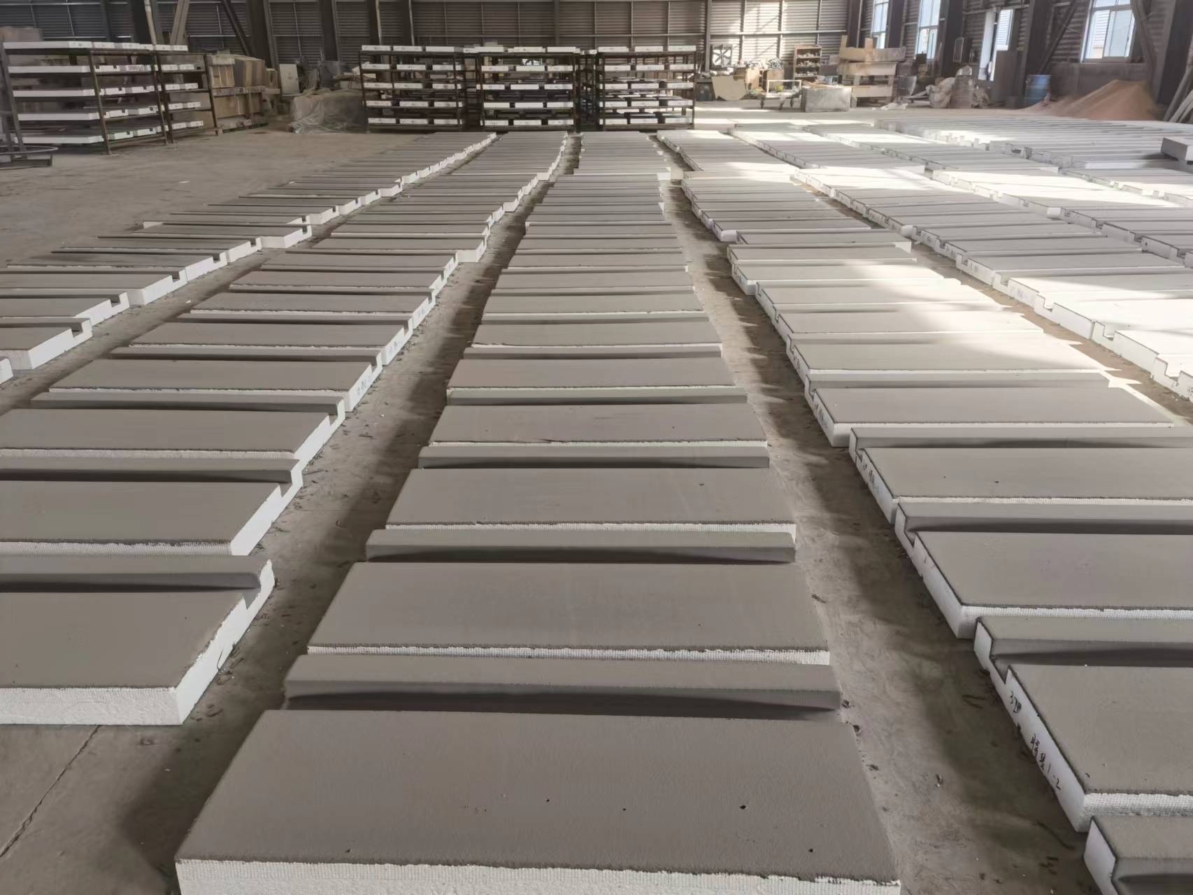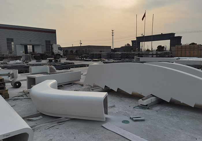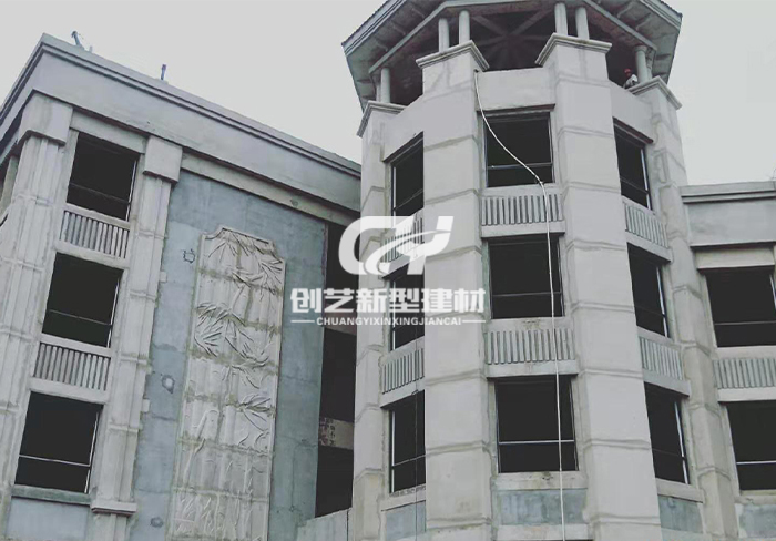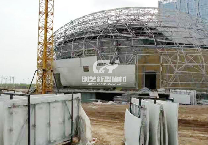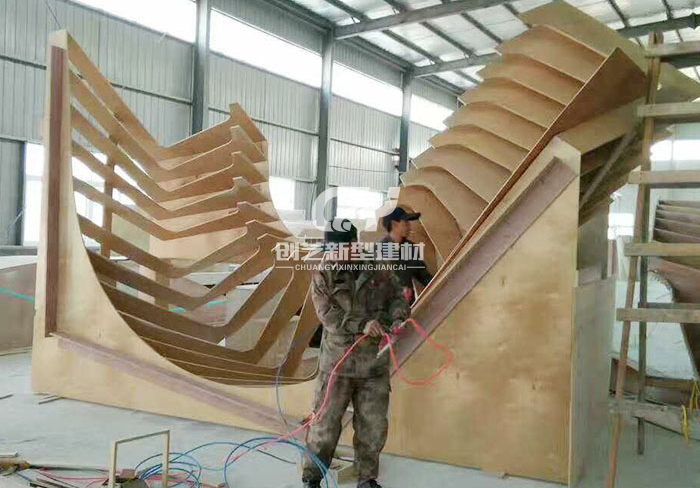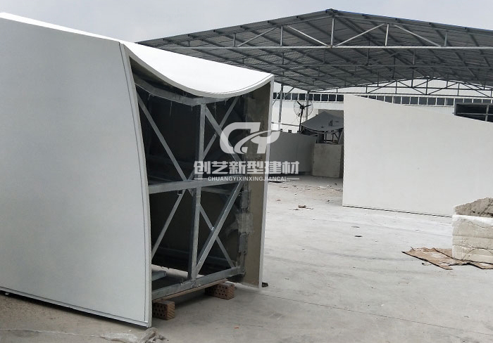 采用機(jī)械噴制加工,高溫養(yǎng)護(hù)成型,大型構(gòu)件采用鋼骨架節(jié)點(diǎn)方式